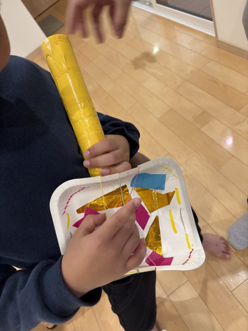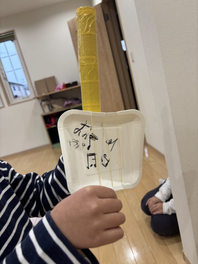 年長さんのグループで、紙皿を使ったギター作りをしました。